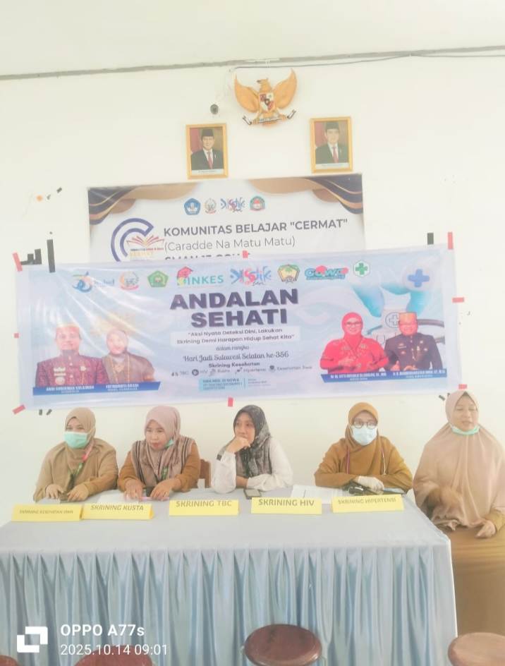 Jelang peringatan Hari Jadi Sulawesi Selatan yang ke-356, Puskesmas Bontonompo I menggelar skrining kesehatan di SMAN 13 Gowa, Kecamatan Bontonompo Selatan, Kabupaten Gowa Selasa, 14 Oktober 2025.