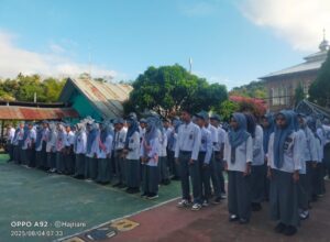 Khusus di SMAN 10 Enrekang para siswa-siswi mengikuti upacara bendera di halaman sekolah pada senin, 4 Agustus 2025.