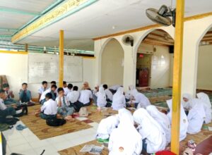 Anak-anak kami tetap belajar dengan lancar dengan menggunakan ruang musallah serta di bawah pohon rindang di areal sekolah.(yun)