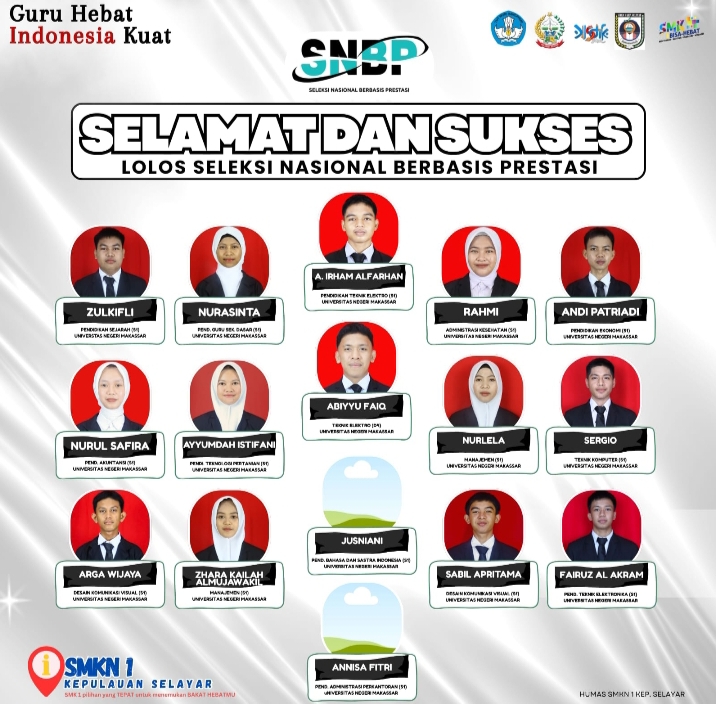 Sebanyak 16 siswa-siswi SMKN 1 Kepuluan Selayar lolos SNBP (Seleksi Nasional Berbasis Prestasi) 2026.